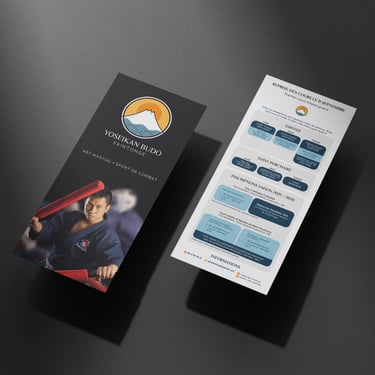 Un logo principal affirme le nom du club, tandis qu’un logo secondaire plus détaillé, enrichi d’une baseline, permet d’expliquer et de faire découvrir ce qu’est le Yoseikan Budo. Cette identité traduit à la fois l’énergie, la discipline et l’esprit collectif de la pratique, tout en renforçant la visibilité du club auprès du grand public.