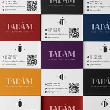 TADÂM est un projet musical pour lequel j’ai conçu une identité visuelle simple et moderne, reflétant notre énergie créative et notre univers éclectique. Le logo en noir et blanc incarne la sobriété et l’élégance, tandis que l’utilisation ponctuelle de couleurs vibrantes sur certains supports ajoute une touche de dynamisme. Cette identité visuelle est pensée pour offrir cohérence et impact, tout en restant fidèle à notre essence : un mélange de créativité, d'authenticité et d'émotion musicale.